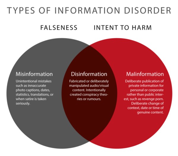 Disinformation is misinformation deliberately spread to deceive people (see Wikipedia and German Government).